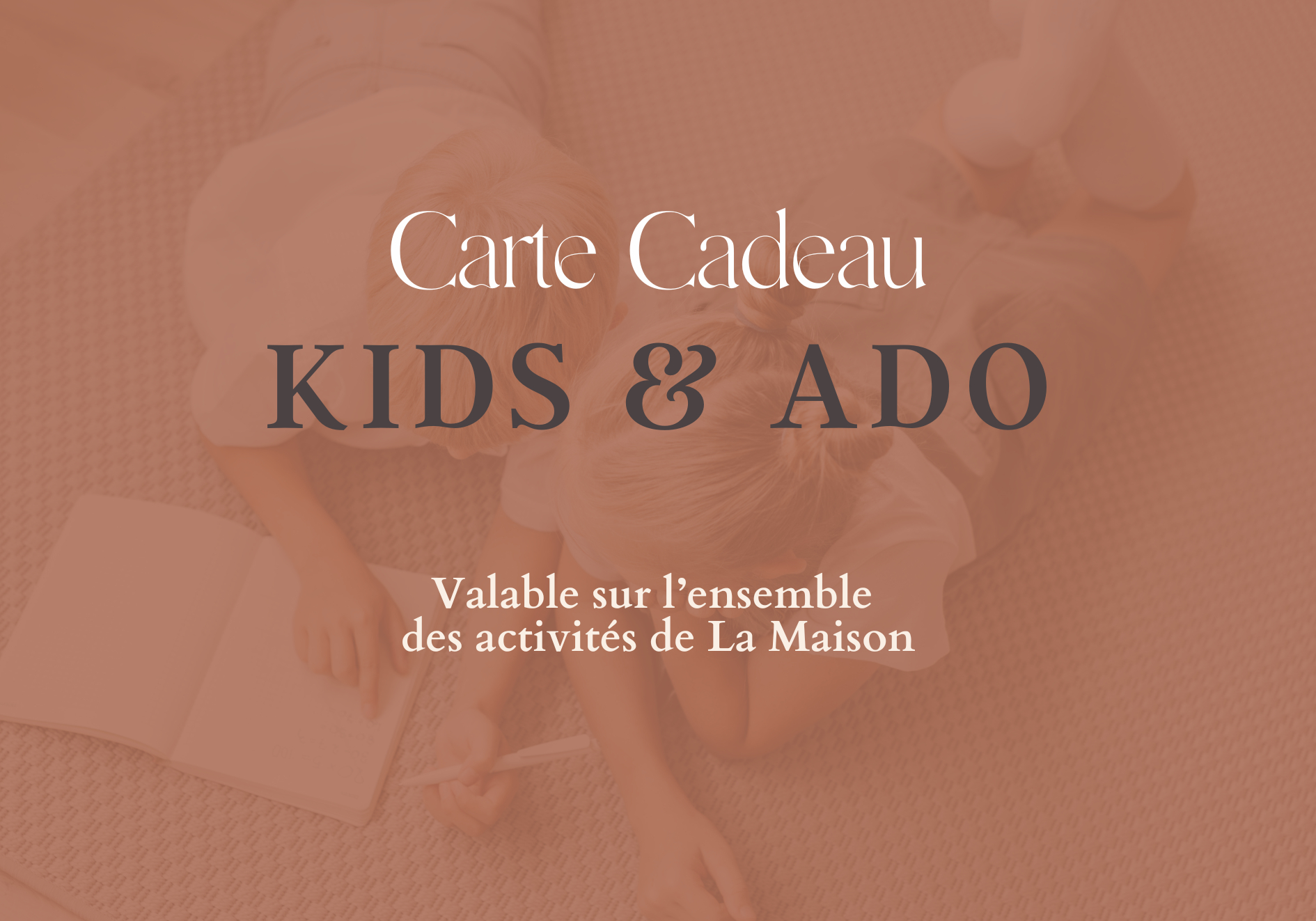 Notre carte cadeau s’adapte à toutes les envies et à tous les budgets. Elle est valable 12 mois sur l’ensemble de nos activités dédiées aux enfants et aux ados : séances de sophrologie, ateliers créatifs, yoga kids ou encore atelier bien-être. Le plus beau des cadeaux pour les aider à grandir sereinement.