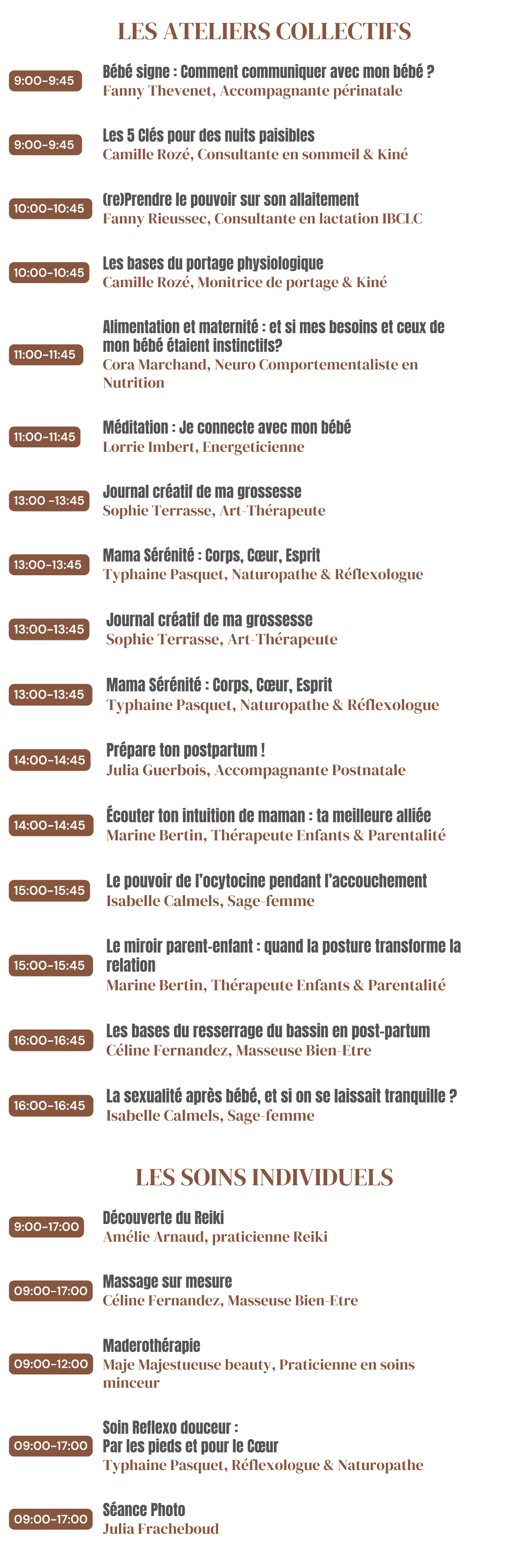 Retrouve nos partenaires adorés qui vont te gâter tout au long de la journée !